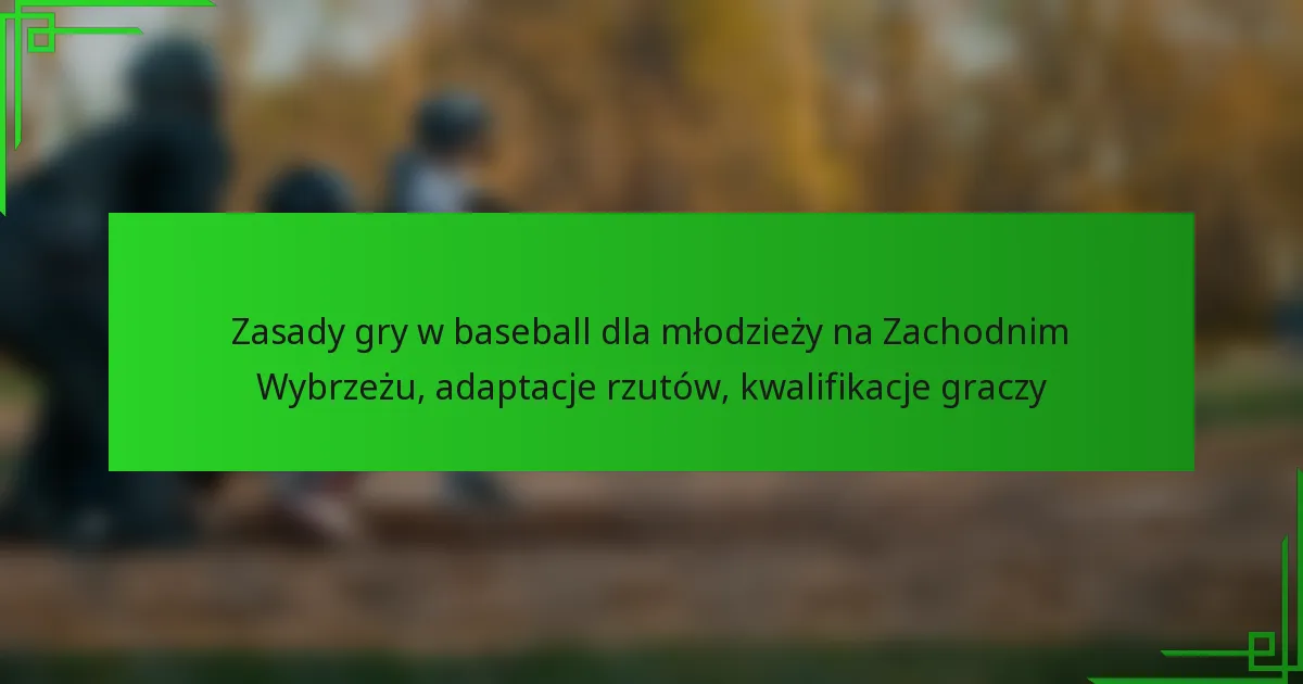 Zasady gry w baseball dla młodzieży na Zachodnim Wybrzeżu, adaptacje rzutów, kwalifikacje graczy